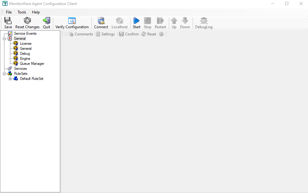 Each configured service instance appears under Services. For EventReporter, this usually means one or more Event Log Monitor instances that collect Windows Event Log data and bind that data to a ruleset.
