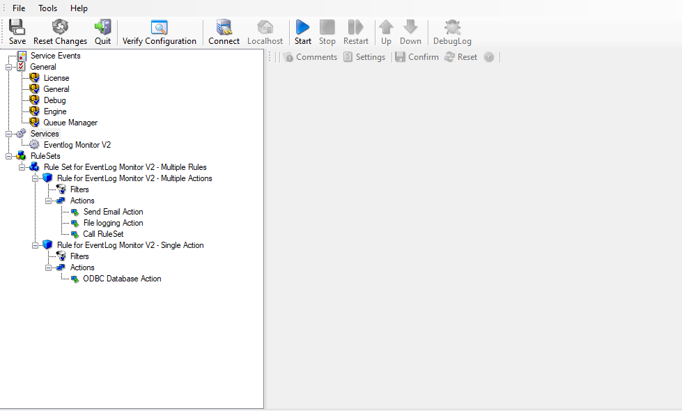 With EventReporter as many “RuleSets”, “Rules” and “Actions” as necessary can be defined.