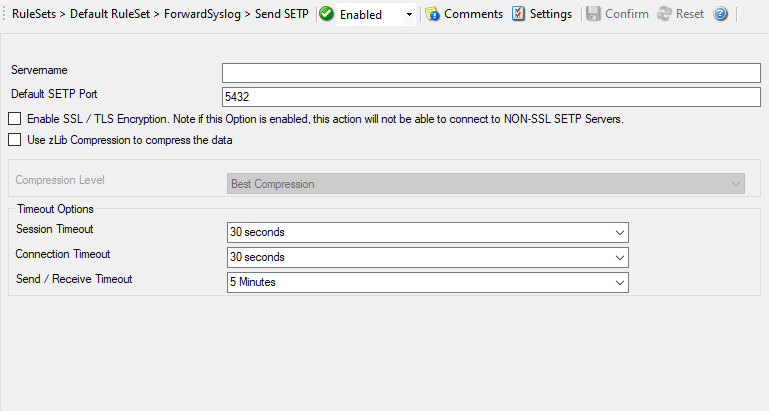 SETP is Adiscon’s protocol for reliably transferring event messages in native format. It is primarily of use for those that want to build a larger, centralized event repository. SETP can optionally be SSL-encrypted.