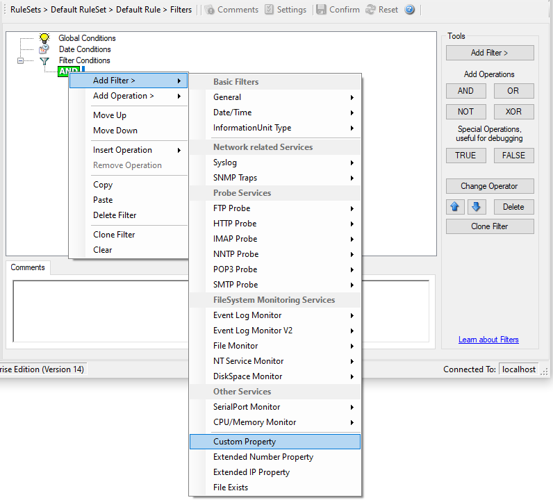 As the name suggests it is a “Custom Property”. Internally in MonitorWare Agent all values are stored in properties. For example the main message is stored in a property called “msg”. By using this dialog you can access properties which are dynamic (Like those from SNMP Trap Monitor when using V2 protocol).