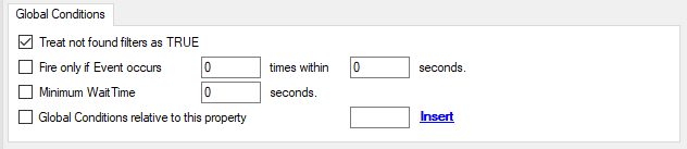 If a property queried in a filter condition is not present in the event, the respective condition normally returns “FALSE”. However, there might be situations where you would prefer if the rule engine would evaluate this to “TRUE” instead. With this option, you can select the intended behavior. If you check it, conditions with properties not found in the event evaluates to “TRUE.